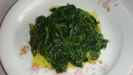 There are plenty of green leaf vegetables around in Greece, and the Greek love them. The Horta Vrasta is one example of a very fine vegetable dish. It is also rather simple: You boil leafy vegetables like spinach, chard or chicory and then simply season them to taste.