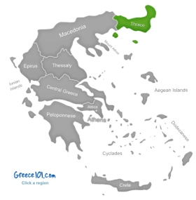 Western Thrace is the part of the geographical region Thrace that is in Greece. There is also a Northern Thrace in Bulgaria and Eastern Thrace in Turkey. Over 370,000 people live in Western Thrace, and a big part of the population is made up of Muslims, while the other majority consists of Christians. Western Thrace has often been a place of conflict but also of harmony between the bordering countries, and is still an important base for the Greek army these days. There is a lot of security along the borders in this part of Greece as Greece has a lot of problems with illegal immigrants trying to cross over into Greece via Western Thrace.